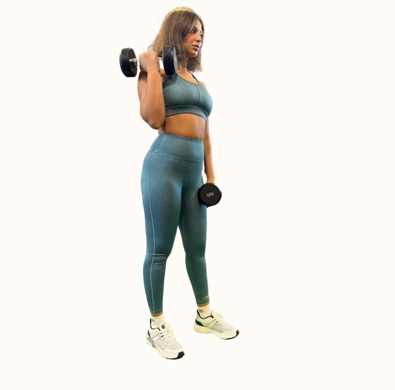 - الصدرية مصممة بقوام مناسب لتثبيت الصدر بشكل مريح وتقديم الدعم اللازم، بينما يمنحك الليجنز حرية الحركة وتأمين الجسم بشكل مثالي.